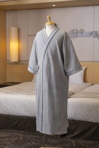 綿素材のボリューム感あるニットワッフル生地です。 フード付きのポンチョタイプです。 グランピングやサウナなどプライベート空間でのリラックスタイムを心地よく包み込みます。 業務用に開発された生地でリネンサプライ可能です。 …