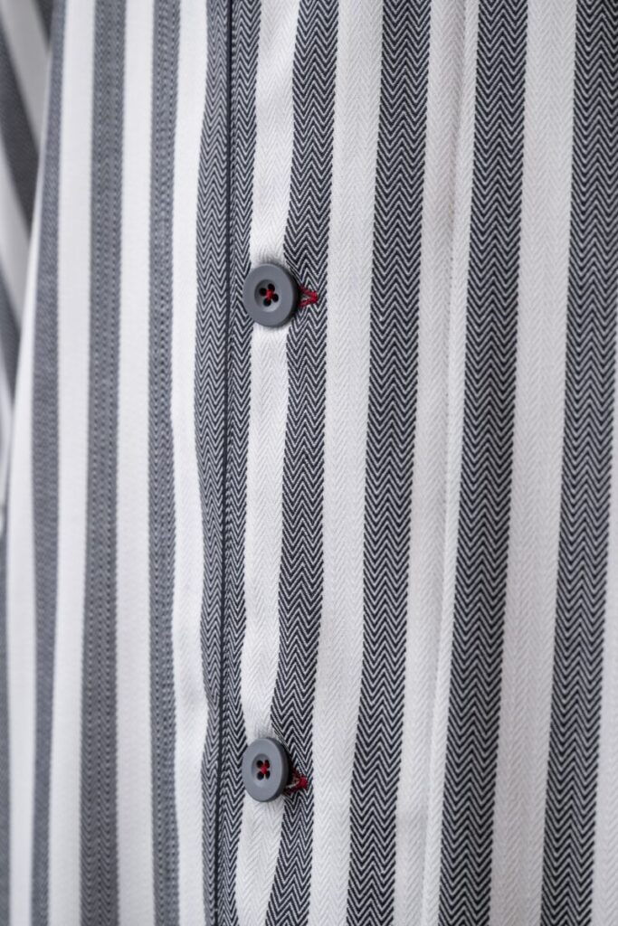 ヘリンボンチャコール ボタン襟