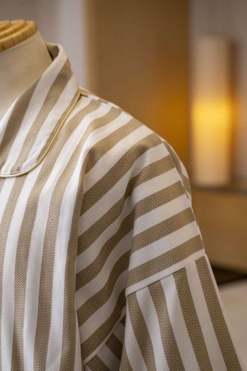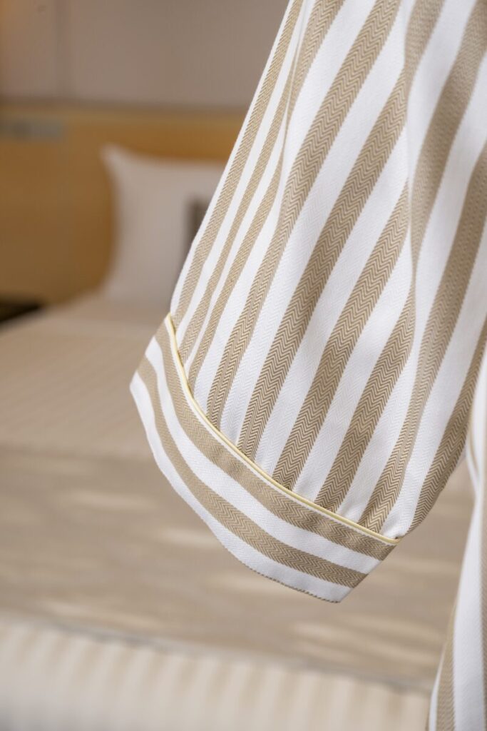 幅広い宿泊施設にマッチしやすいキャメル色のストライプ柄。
