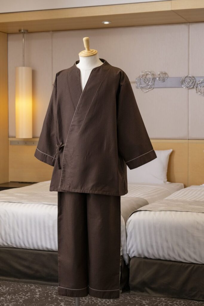 四つ紐タイプのデザインで、温浴施設付きのホテルや旅館などでの館内着としても最適です。