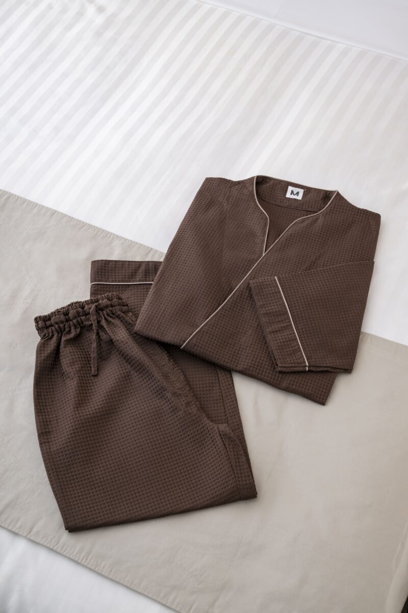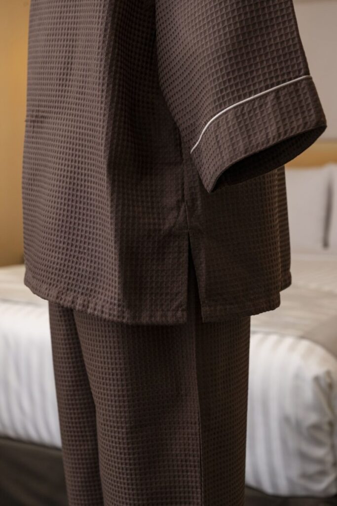 ワッフルガウン・クレイジーパターン・ポケット刺繍