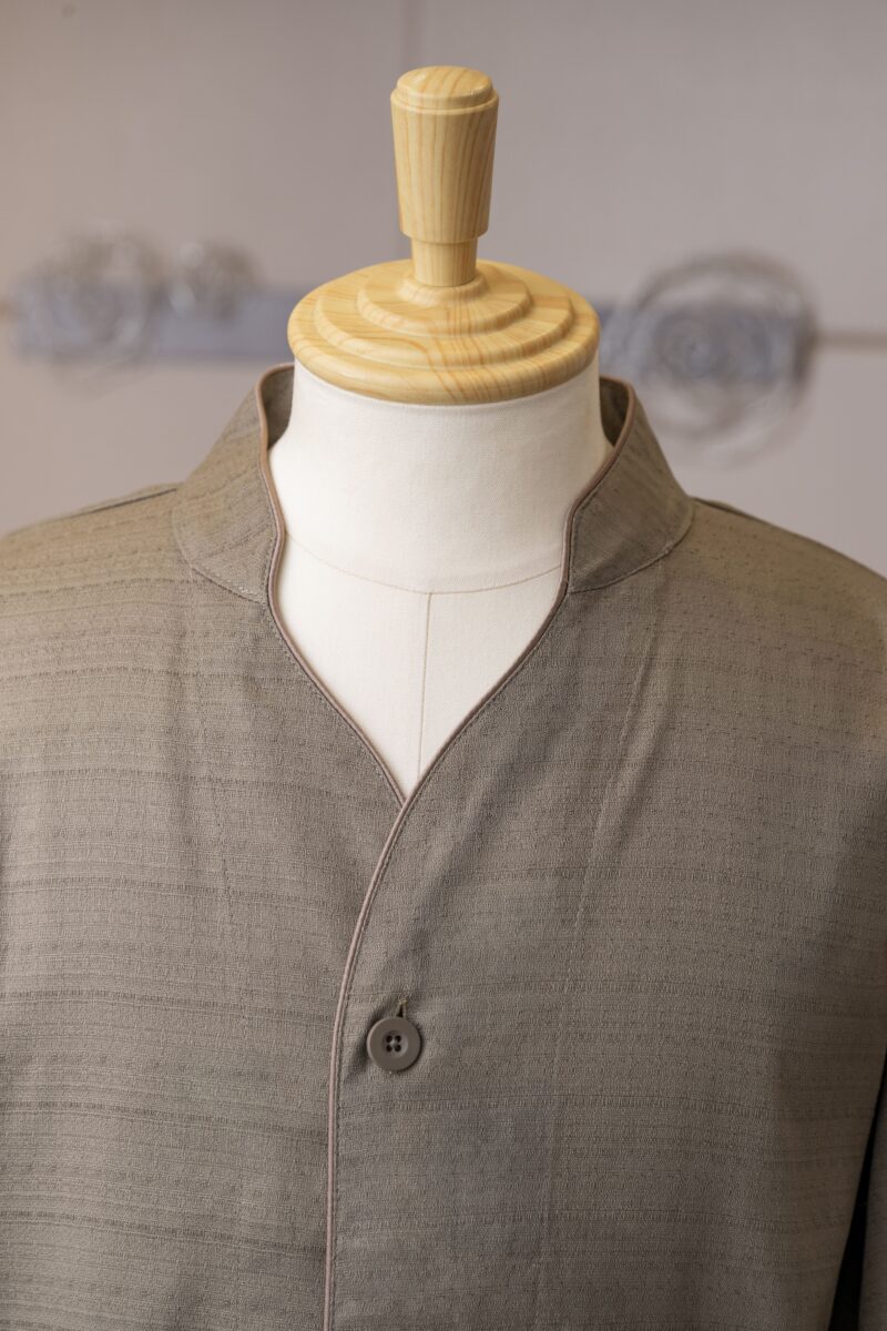 スタンドカラータイプでシャープな印象を演出。襟がないため仕上げも簡単です。