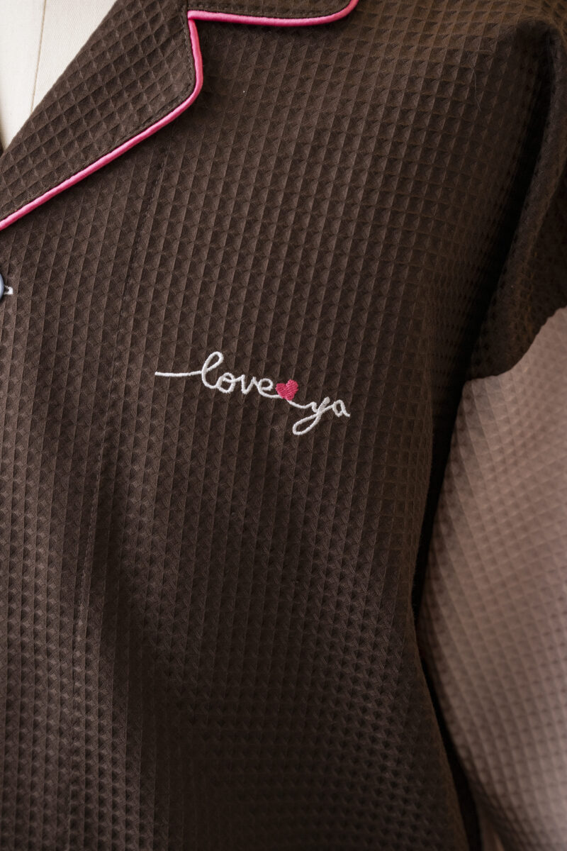 - ワッフルガウン・クレイジーパターン・袖刺繍