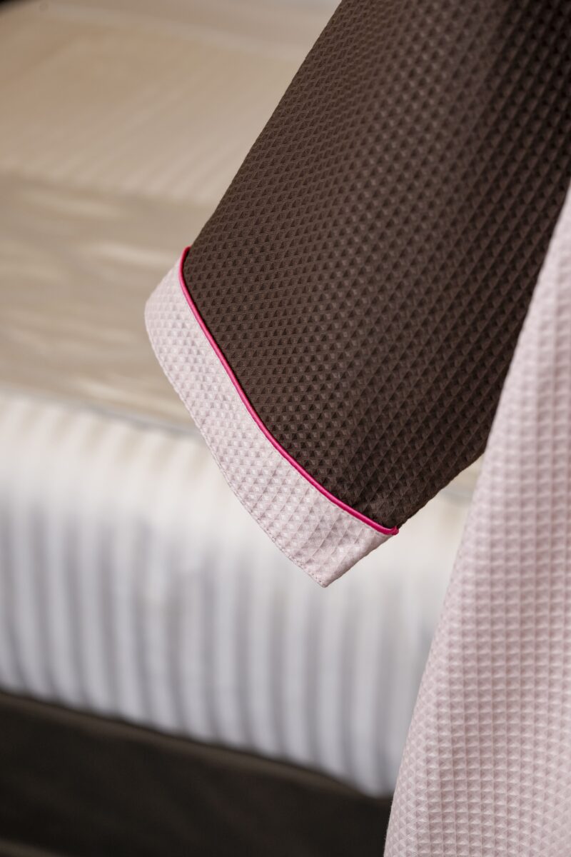綿素材のボリューム感あるニットワッフル生地です。 フード付きのポンチョタイプです。 グランピングやサウナなどプライベート空間でのリラックスタイムを心地よく包み込みます。 業務用に開発された生地でリネンサプライ可能です。 …