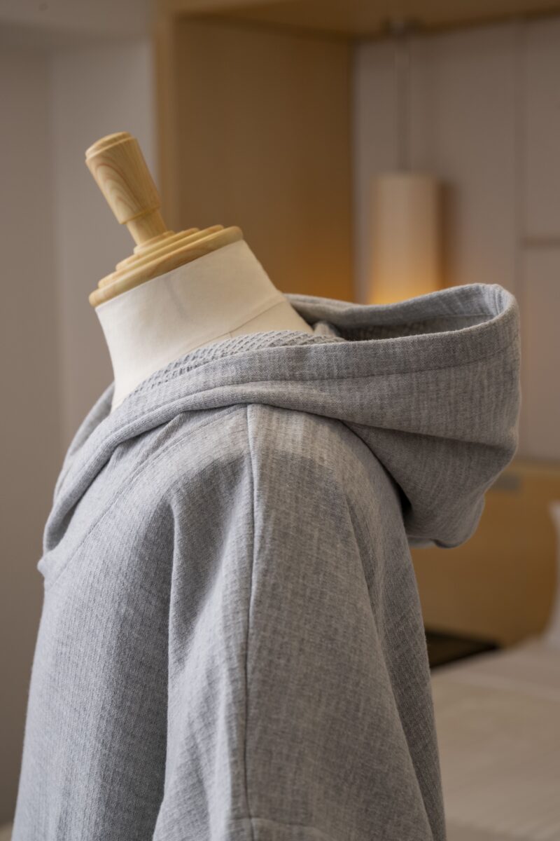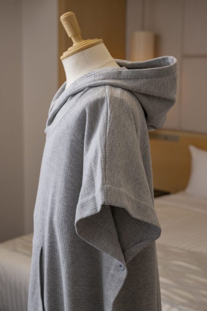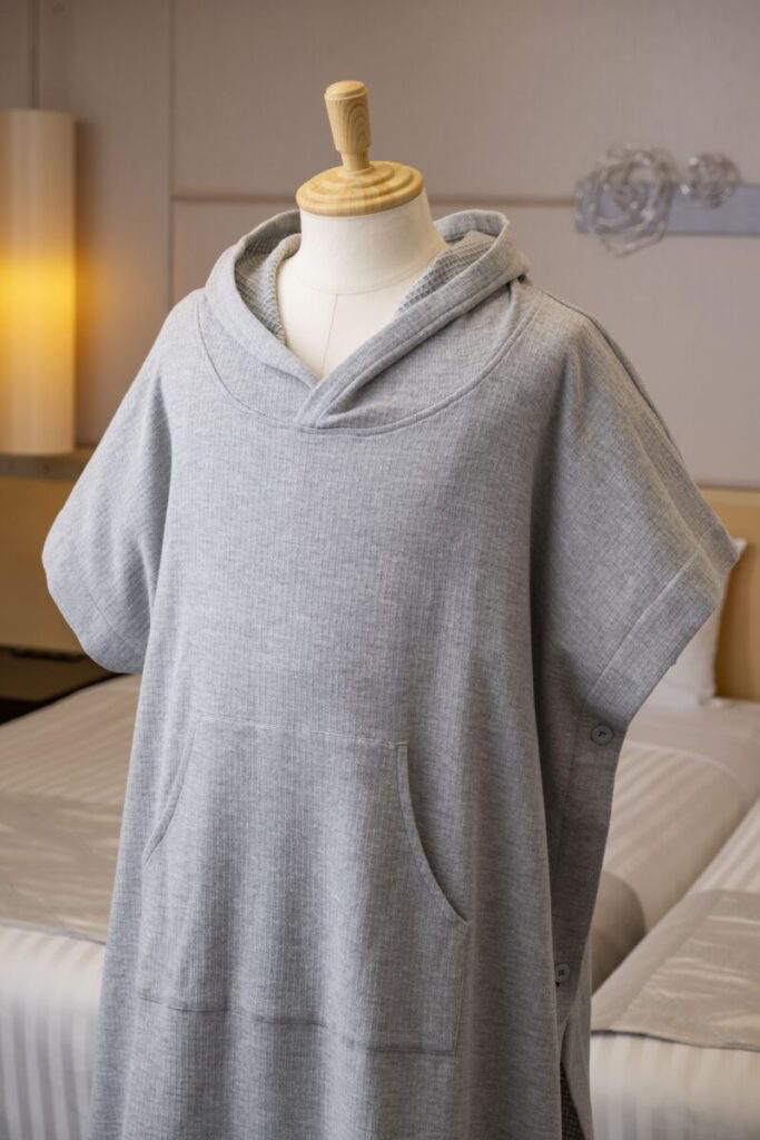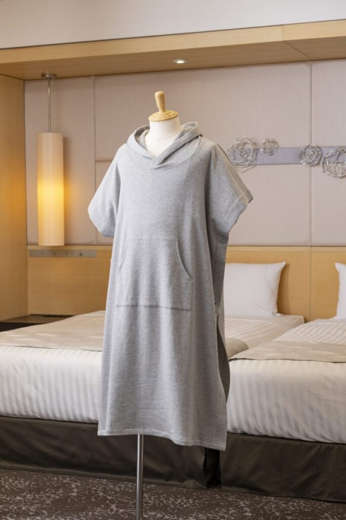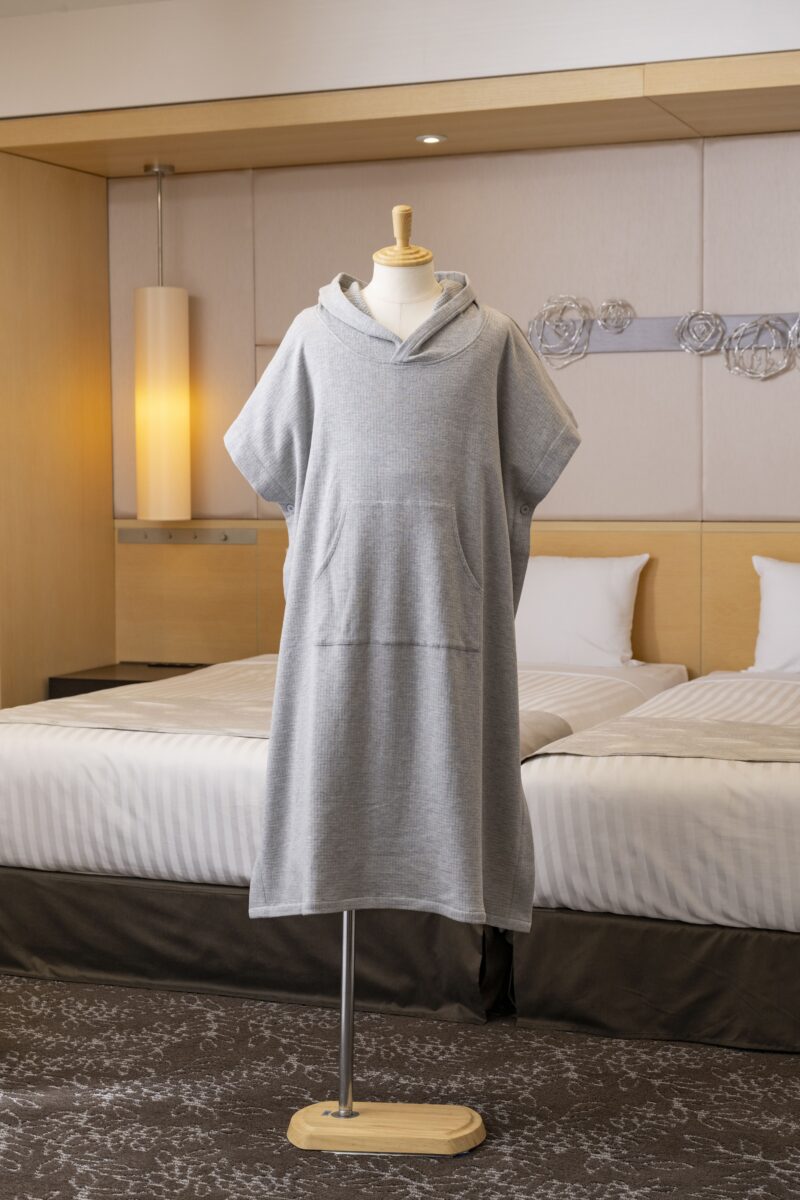 幅広い宿泊施設にマッチしやすいキャメル色のストライプ柄。 肉厚で柔らかな風合いのヘリンボーン生地を使用しています。 シワになりにくく丈夫で長持ちする生地です。 腰帯が縫い付けられたガウンタイプです。バイアスなどの色の変更…