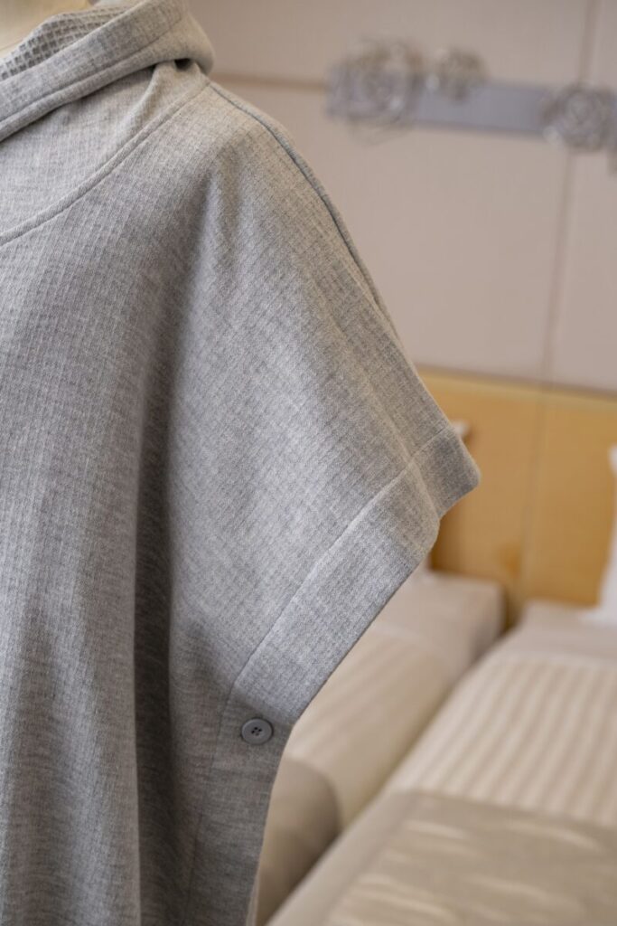 ワッフルガウン・クレイジーパターン・袖刺繍
